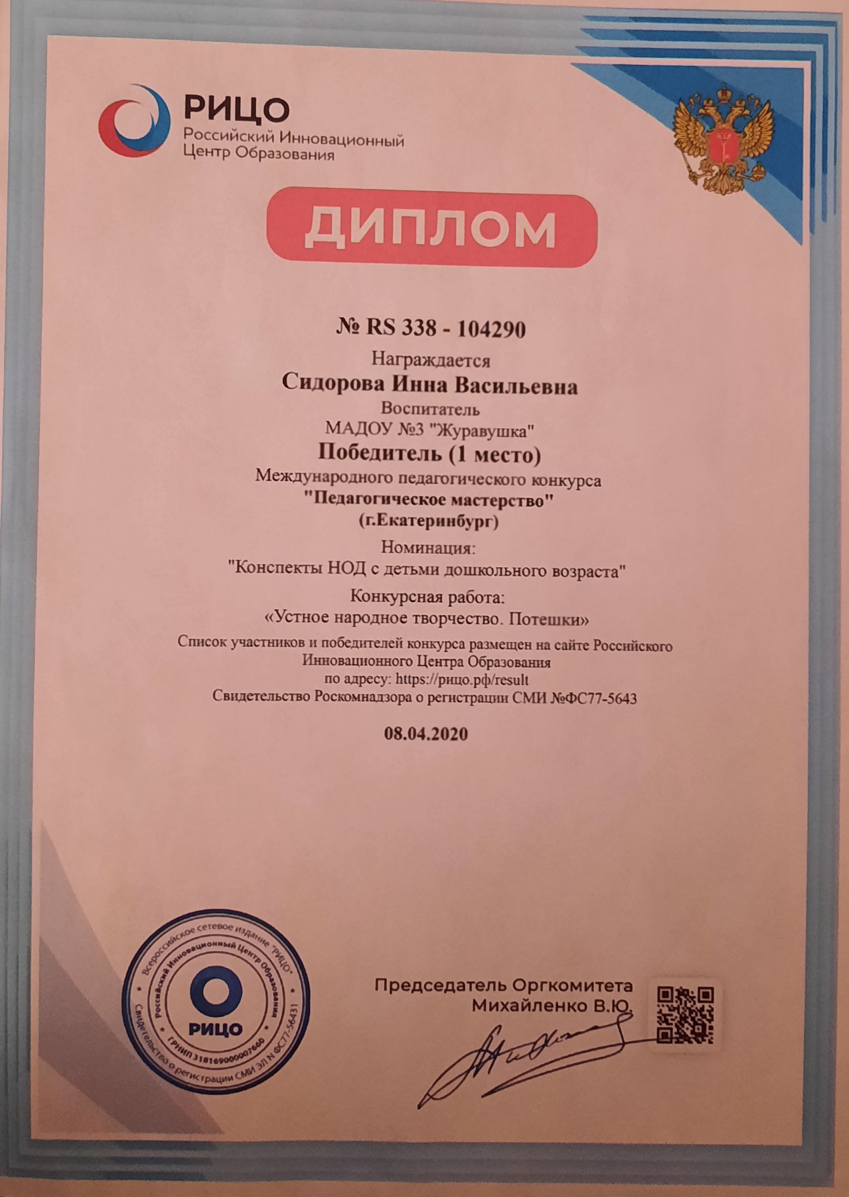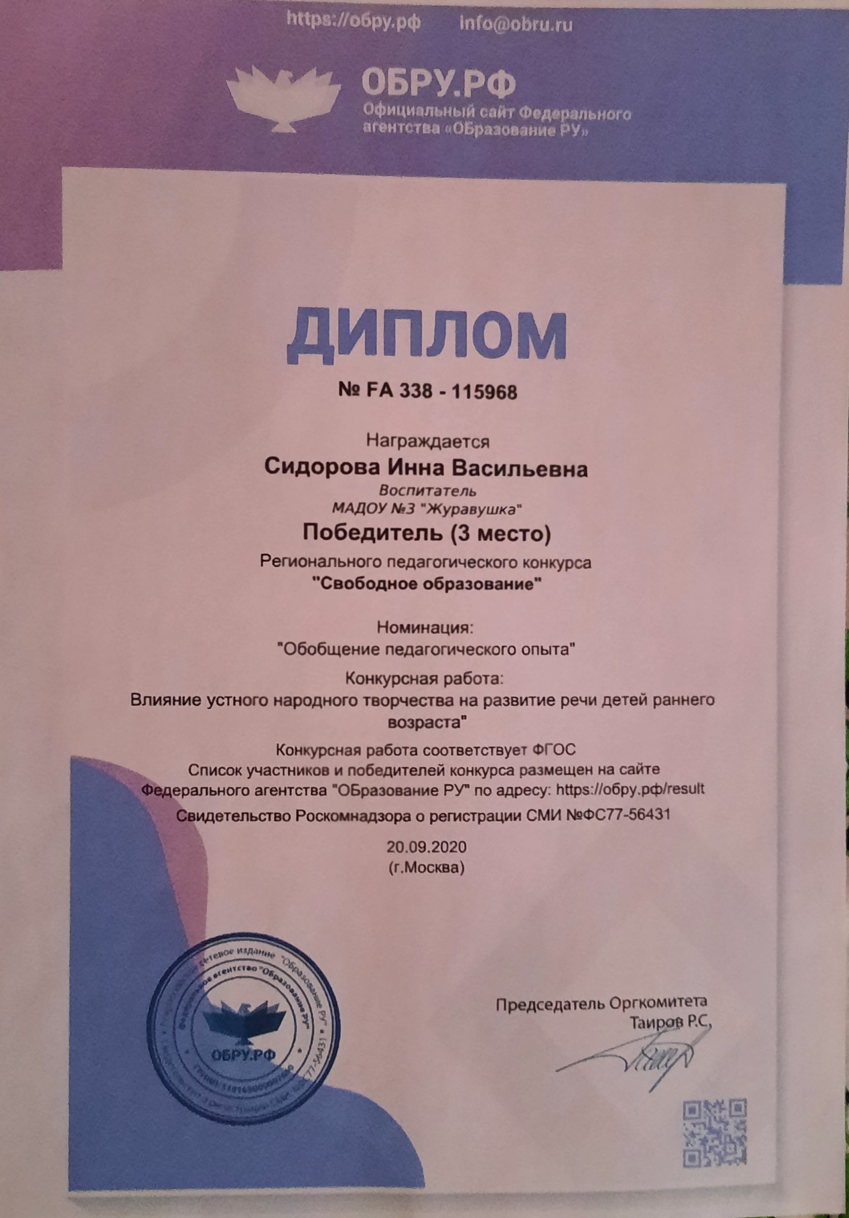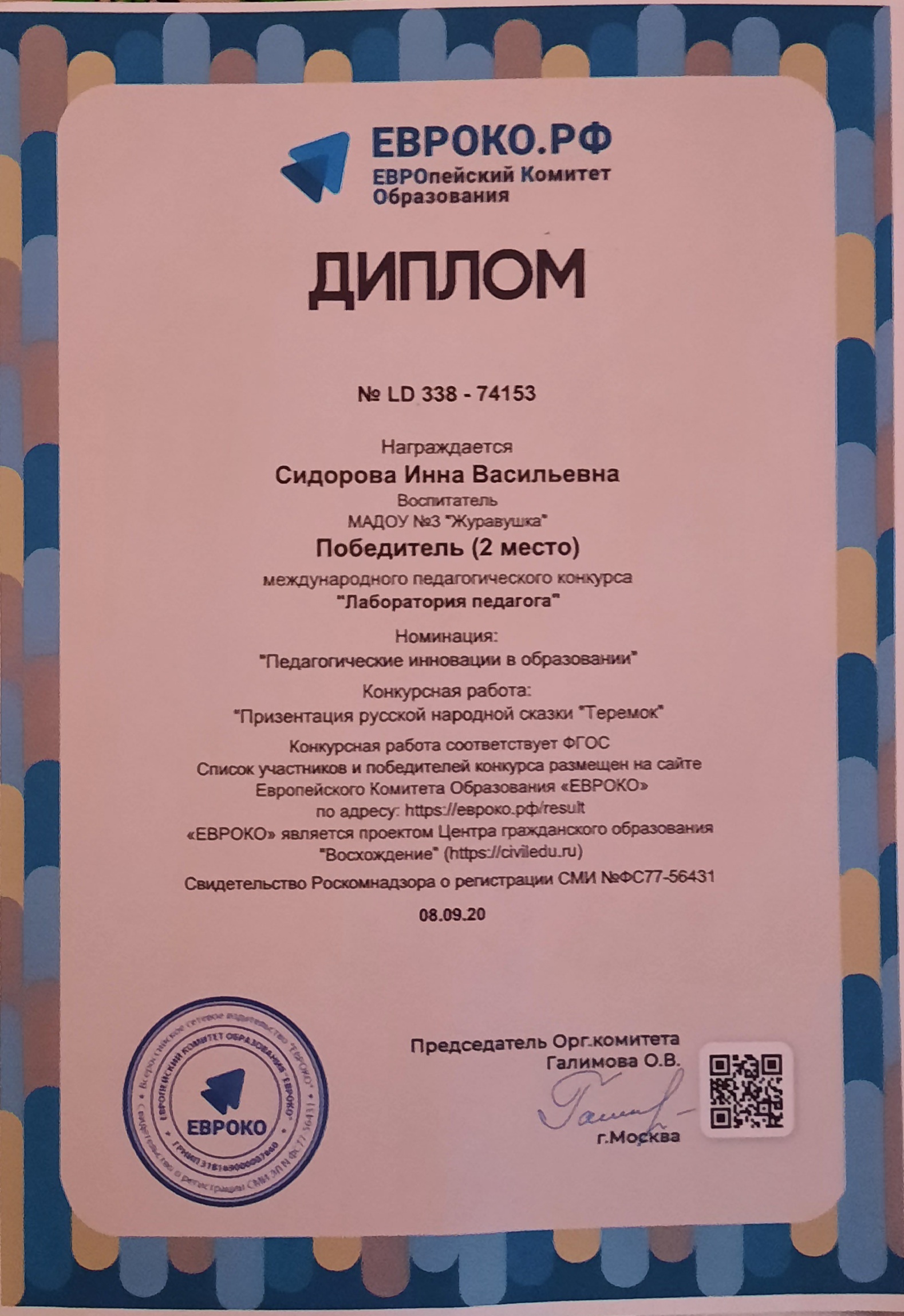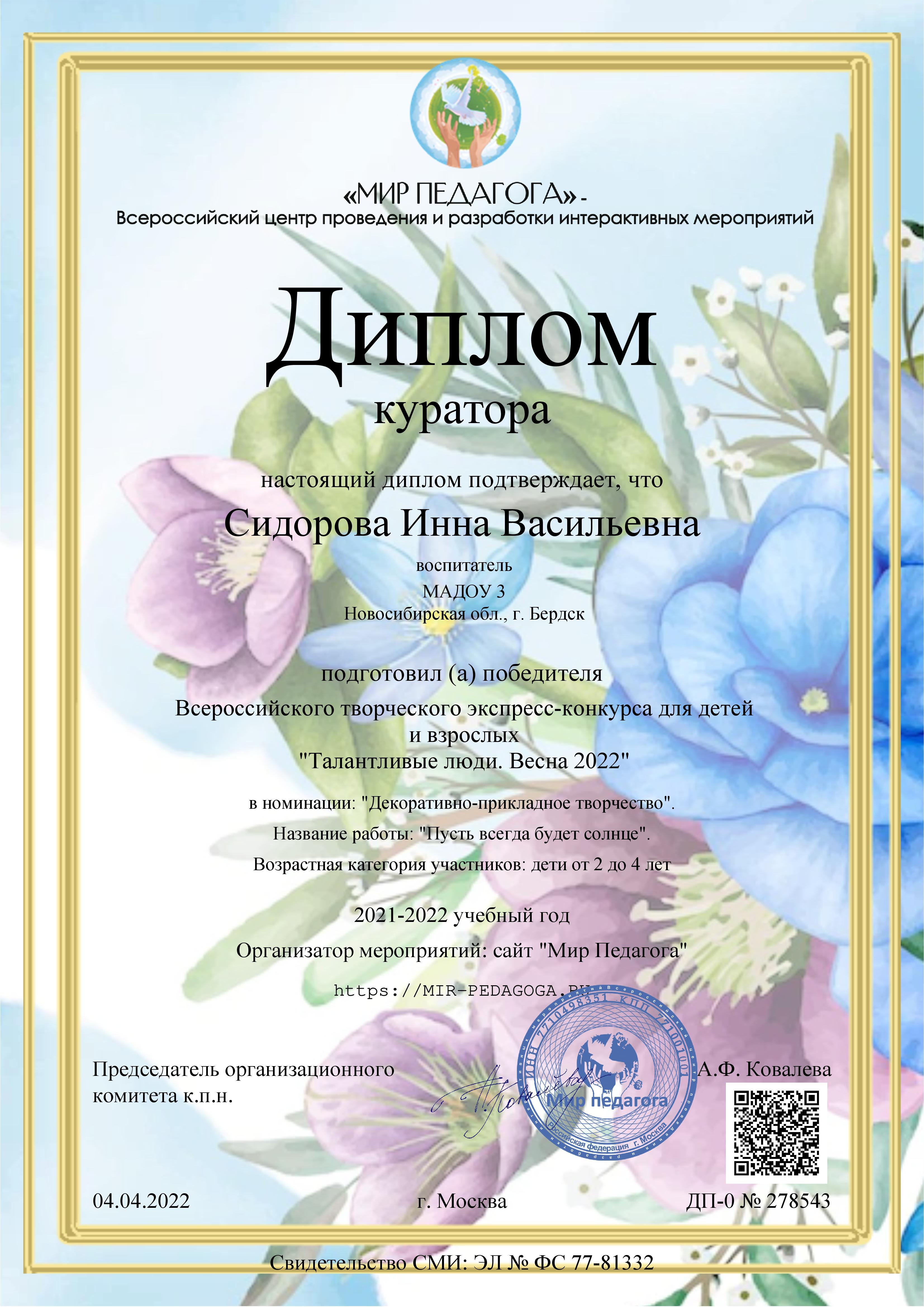 диплом лауреата 1 степени Всероссийской викторины " Воспитатель-профессионал"